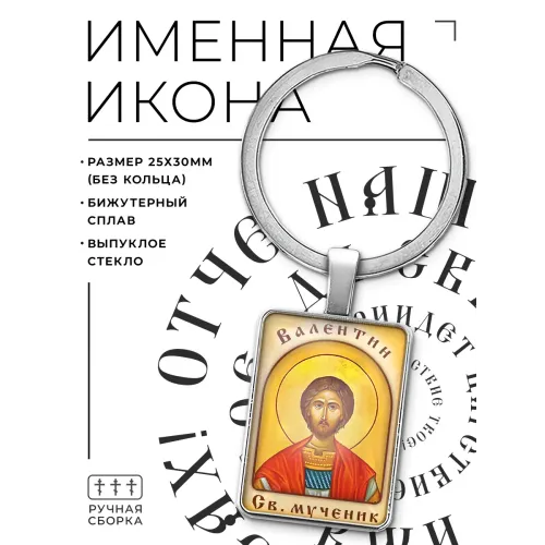 Именная иконка-брелок Валентин — это стильный металлический аксессуар, который сочетает в себе функциональность и духовную символику. Изображение святого покровителя под объёмной стеклянной линзой придаёт этому брелоку особый смысл, что делает его отличным подарком для близких. Основные особенности: