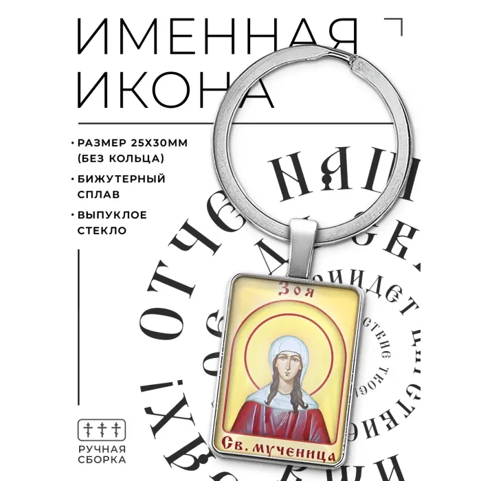 Именная иконка-брелок из бижутерного сплава и стекла с изображением под объёмной линзой.