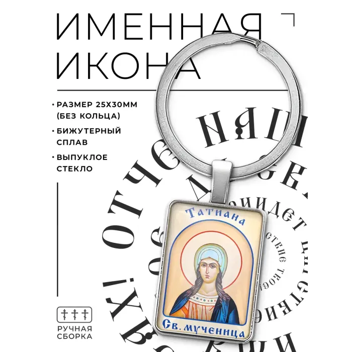 Именная иконка-брелок Татиана из бижутерного сплава с изображением под объёмной стеклянной линзой.
