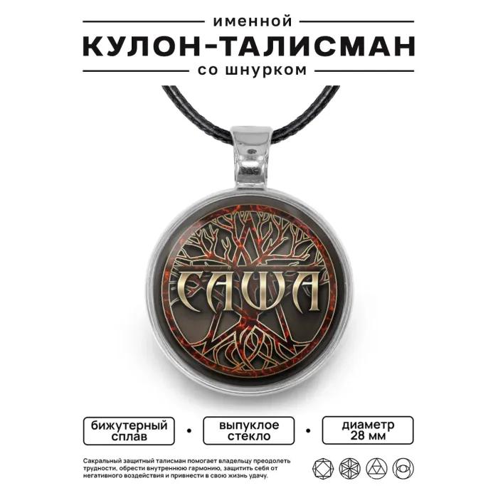 Размеры и комплектация: Диаметр 28 мм. В комплекте чёрный шнурок с застёжкой. Упаковка: прозрачный пакет.