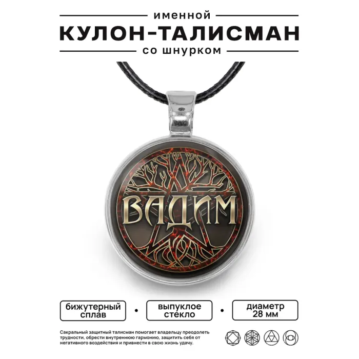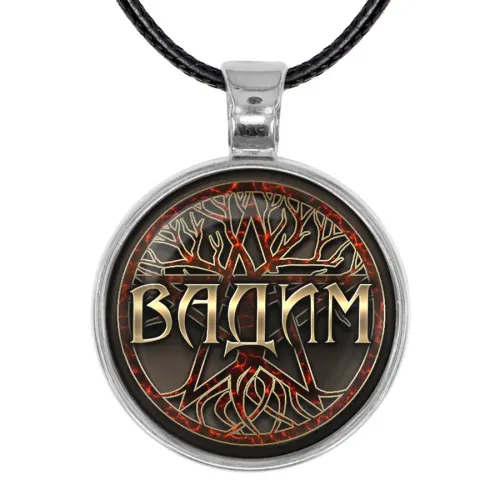 Именной кулон-талисман Вадим — украшение из бижутерного сплава с покрытием под серебро.