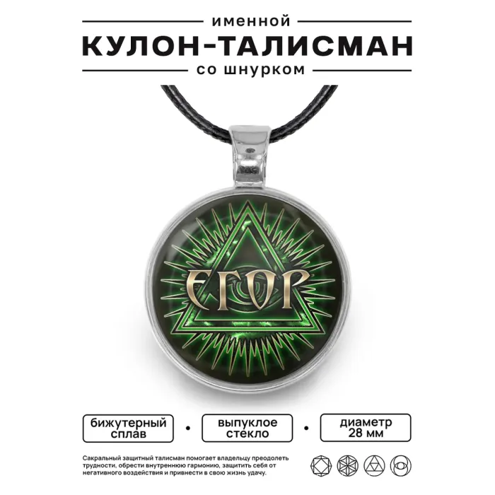 Именной кулон-талисман Егор — аксессуар из бижутерного сплава с покрытием под серебро.