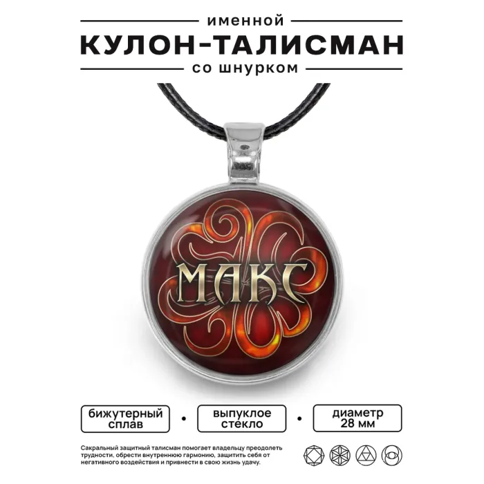 Именной кулон-талисман с гравировкой имени Максим.