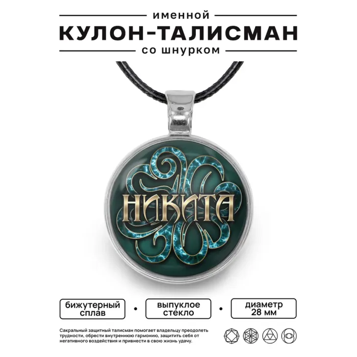 Именной кулон-талисман Никита — украшение из бижутерного сплава с покрытием под серебро.