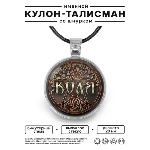 Именной кулон-талисман Николай — сувенирный аксессуар из бижутерного сплава с покрытием под серебро.