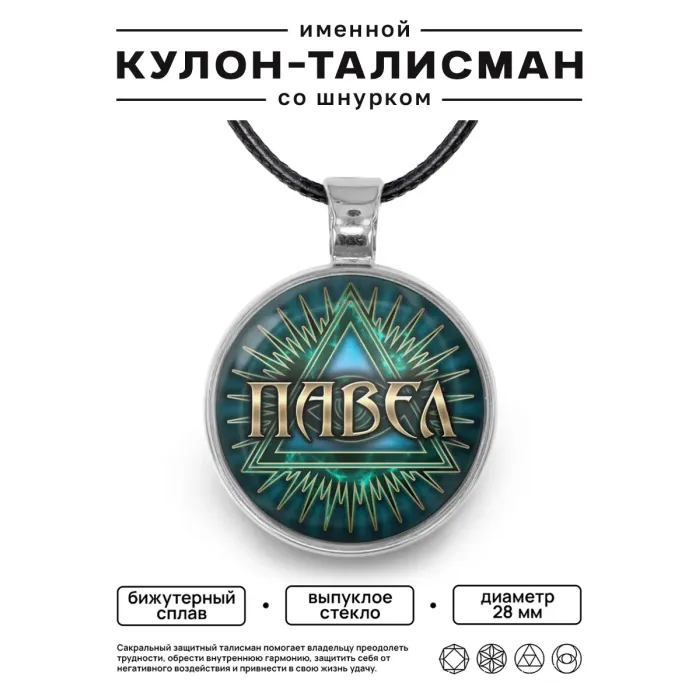 Именной кулон-талисман Павел из бижутерного сплава с покрытием под серебро.