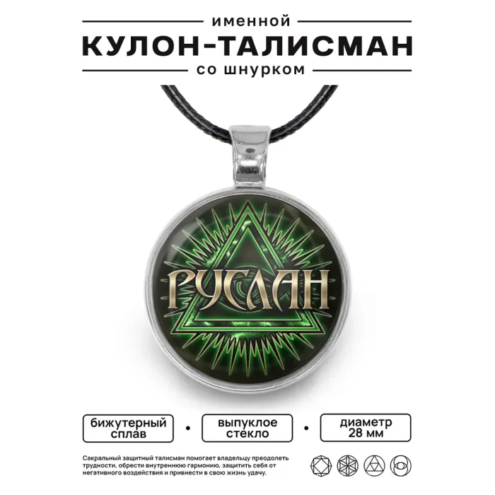 Именной кулон-талисман Руслан — сувенир из бижутерного сплава с покрытием под серебро.