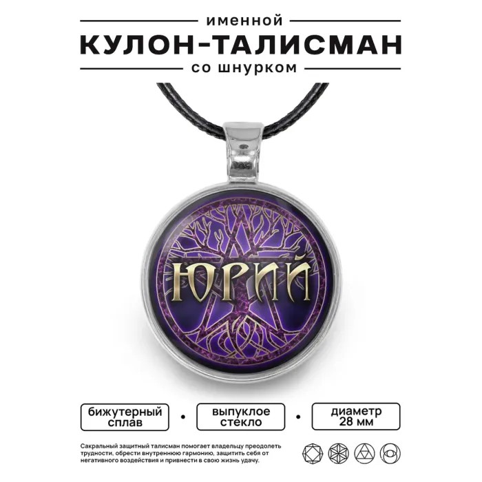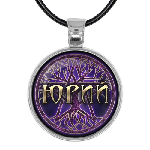 Именной кулон-талисман с гравировкой имени «Юрий». Изготовлен из бижутерного сплава.