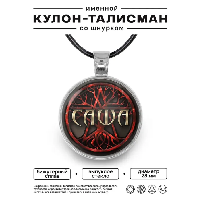 Размеры и комплектация: Диаметр: 28 мм. В комплекте черный шнурок с застежкой. Упаковка: прозрачный пакет.