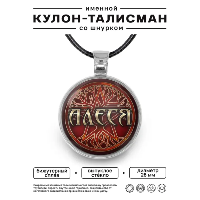 Именной кулон-талисман Алеся — украшение из бижутерного сплава.