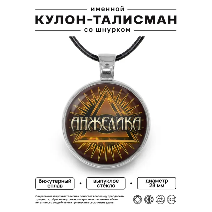 Именной кулон-талисман Анжелика — аксессуар из бижутерного сплава.