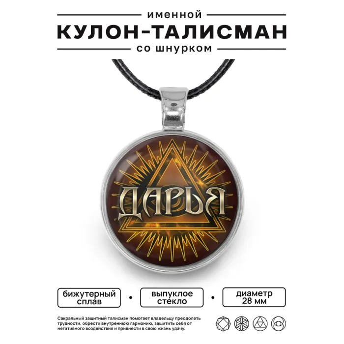Именной кулон-талисман «Дарья» — сувенирное украшение из бижутерного сплава с покрытием под серебро.