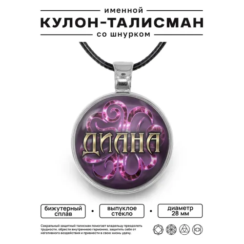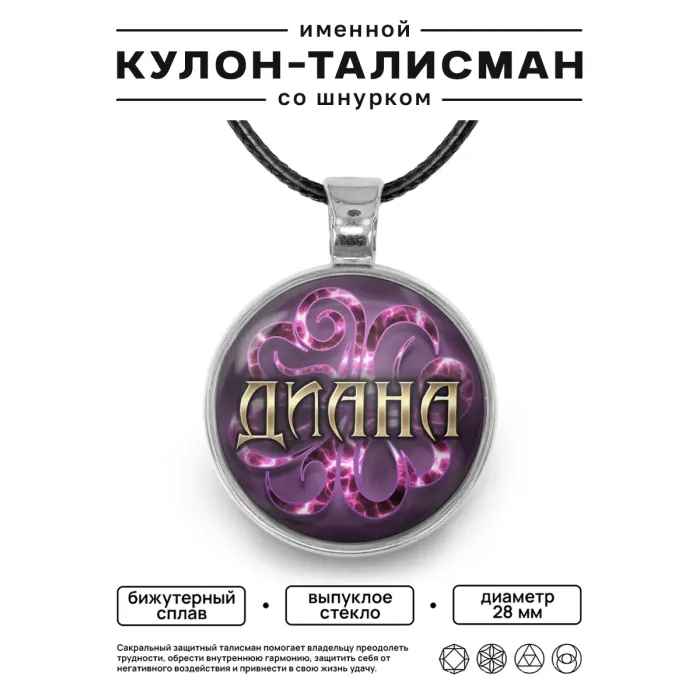 Именной кулон-талисман Диана — аксессуар из бижутерного сплава с покрытием под серебро.