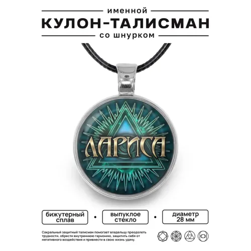 Именной кулон-талисман Лариса — аксессуар из бижутерного сплава с покрытием под серебро.