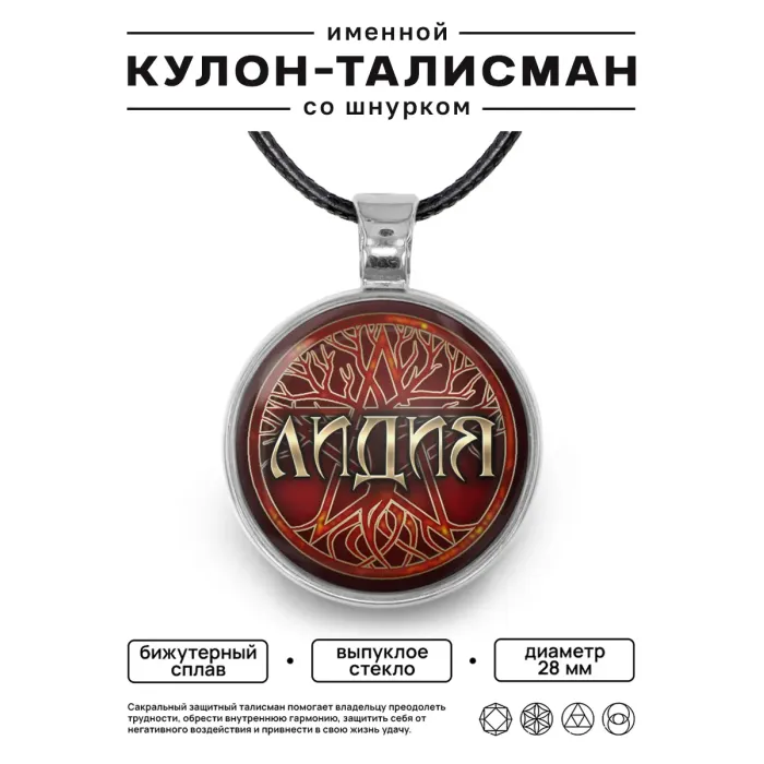 Именной кулон-талисман Лидия — украшение из бижутерного сплава с покрытием под серебро.