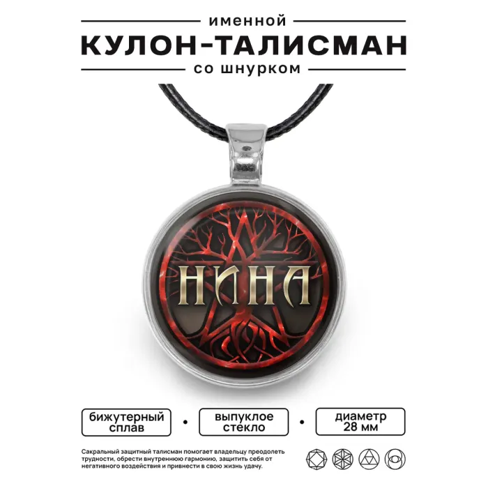Именной кулон-талисман Нина. Изготовлен из бижутерного сплава с покрытием под серебро.