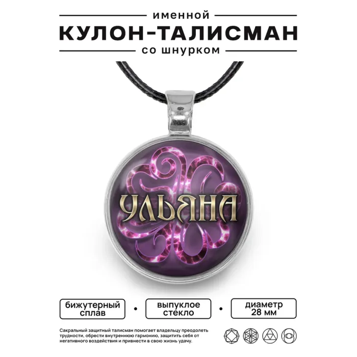 Именной кулон-талисман Ульяна. Изготовлен из бижутерного сплава с покрытием под серебро.