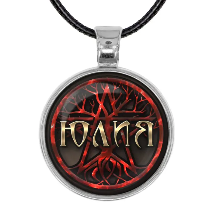 Именной кулон-талисман с гравировкой «Юлия». Материал — бижутерный сплав.