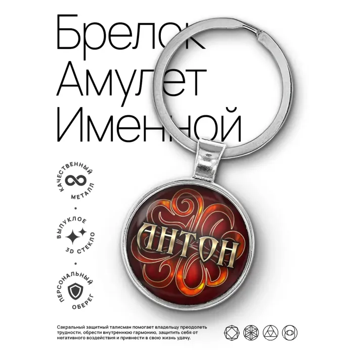 Именной брелок-талисман Антон. Изготовлен из бижутерного сплава с покрытием под серебро.