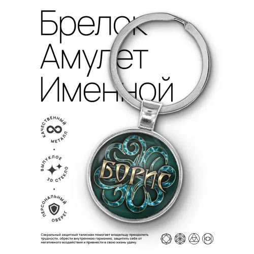 Именной брелок-талисман из бижутерного сплава с покрытием под серебро.