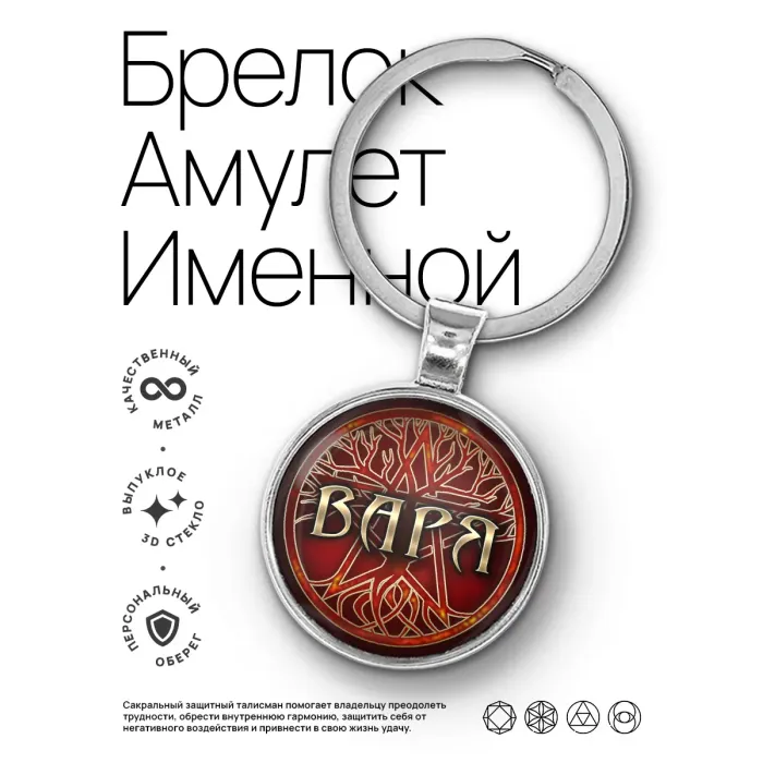 Именной брелок-талисман Варвара. Изготовлен из бижутерного сплава с покрытием под серебро.