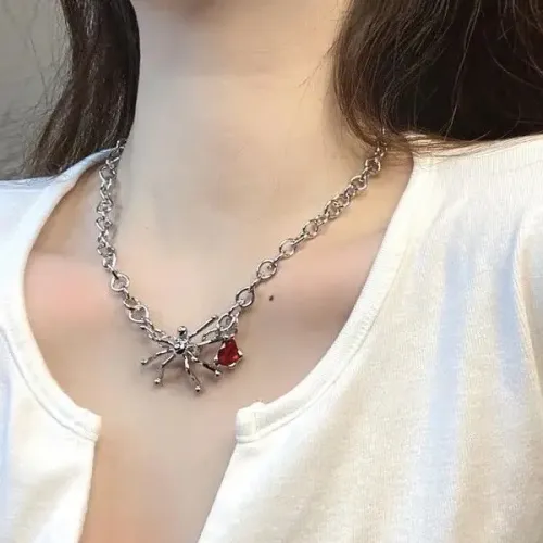 Бижутерное колье с подвеской в виде паука и кристаллом. Длина цепочки 46 см.