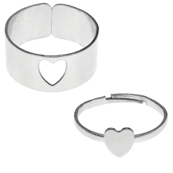 Парные кольца в форме сердца из бижутерного сплава с серебряным покрытием.