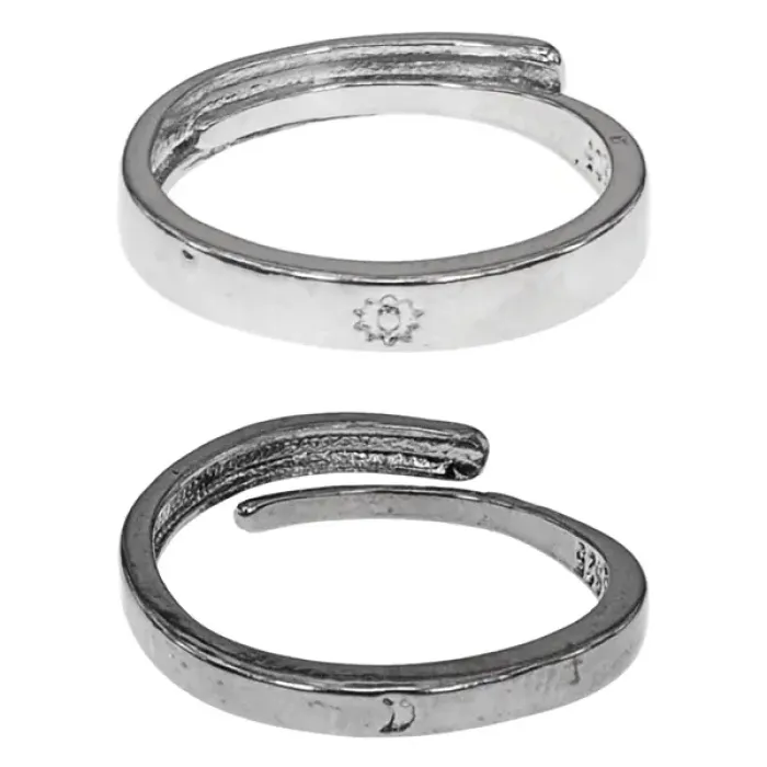 Парные кольца с дизайном месяца и солнца. Изготовлены из металла, имеют безразмерную форму.