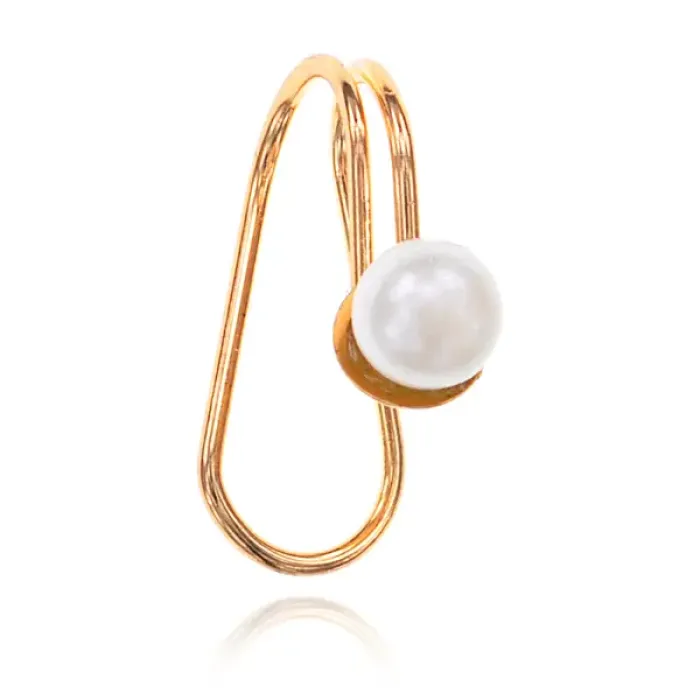 Серьга-каффа из бижутерного сплава с искусственным жемчугом.