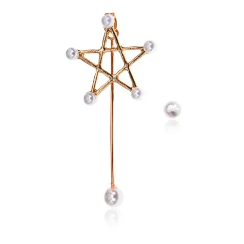 Асимметричные серьги Пентаграмма с искусственным жемчугом SE247