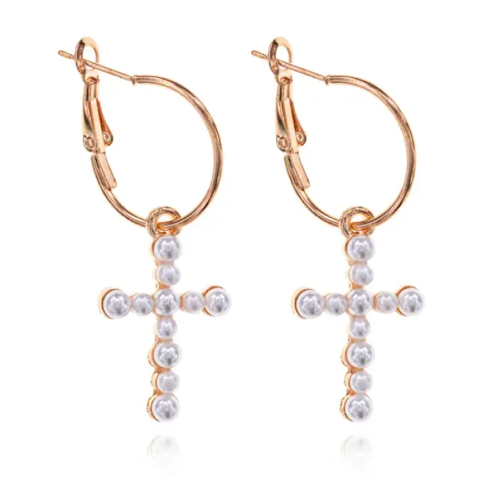Серьги-сувенир в форме креста из бижутерного сплава с искусственным жемчугом и итальянским замком.