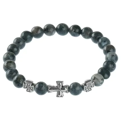 Православный стрейч-браслет из натурального лабрадора с надписью «Спаси и сохрани».