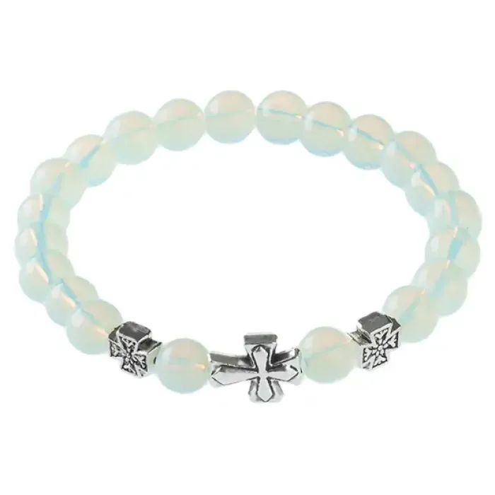 Православный стрейч-браслет из натурального лунного камня с надписью «Спаси и сохрани».