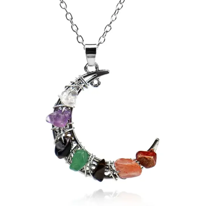 Кулон с символикой 7 чакр и луны из бижутерного сплава с покрытием под серебро и вставками из натуральных камней.