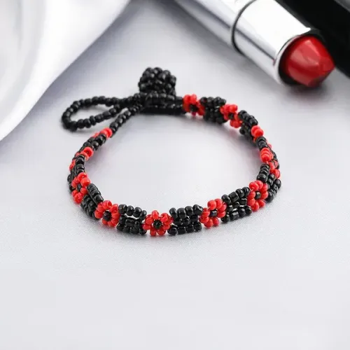 Браслет из бисера, цвет черный / красный BS732-01