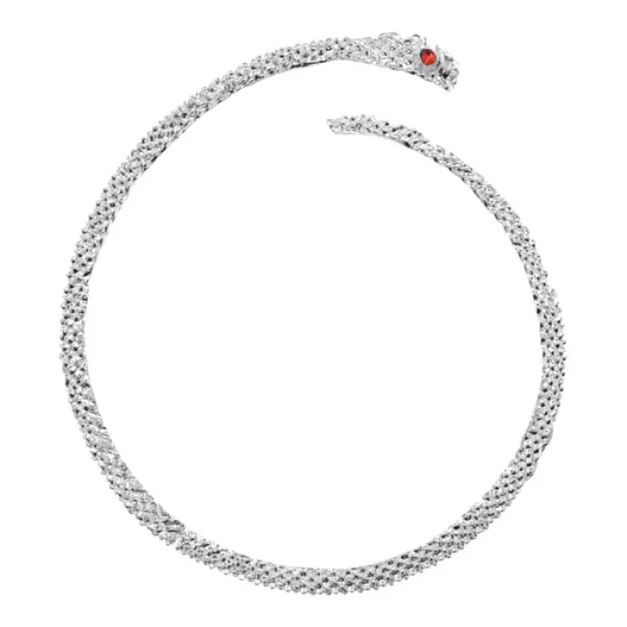 Безразмерный браслет в виде змеи со стразами. Материал — бижутерный сплав.