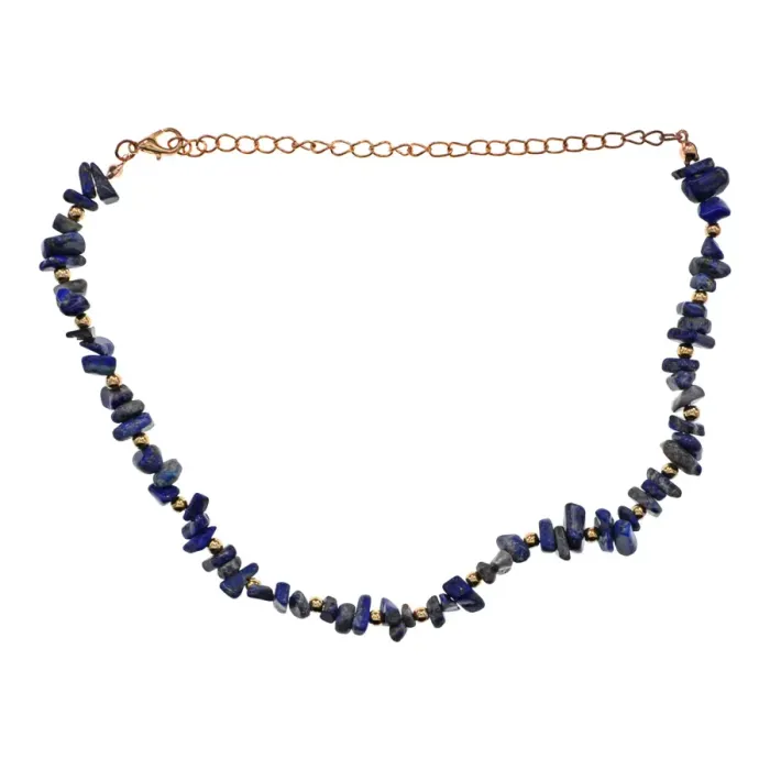 Бусы из натурального содалита и бижутерного сплава с золотым покрытием. Имеют регулируемую длину и замок типа лобстер.