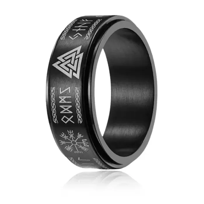Руническое кольцо-спиннер из нержавеющей стали с вращающимся элементом.