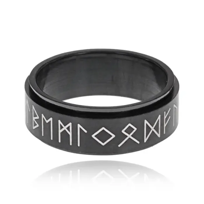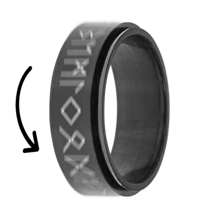 Кольцо-спиннер с руническим дизайном из нержавеющей стали.