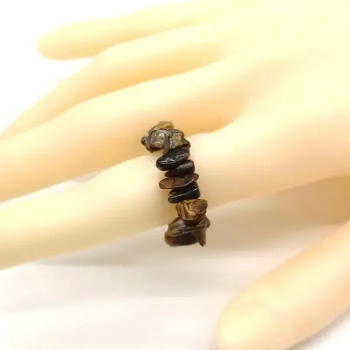Стрейч-кольцо из натурального камня тигровый глаз шириной 7 мм.