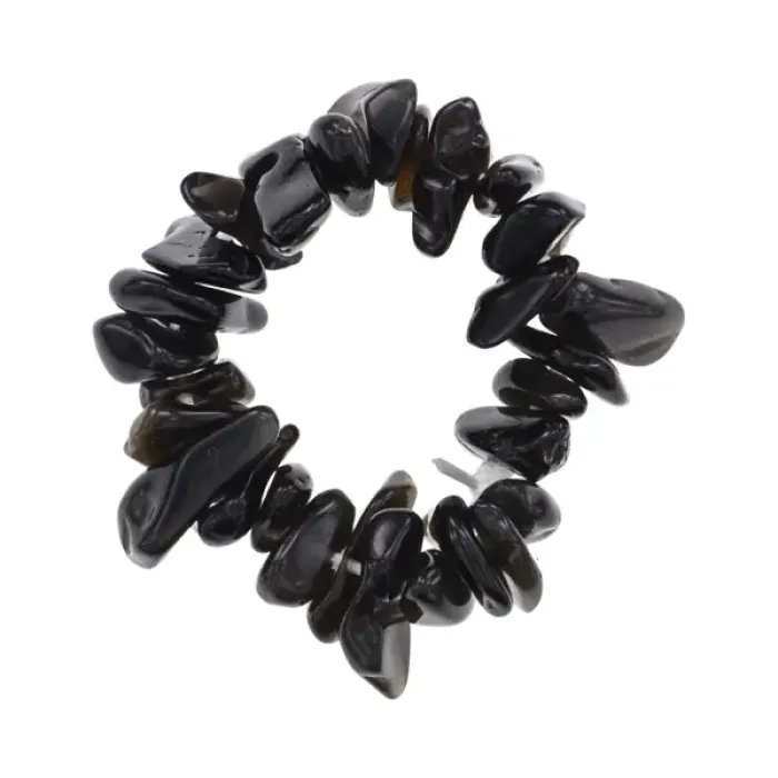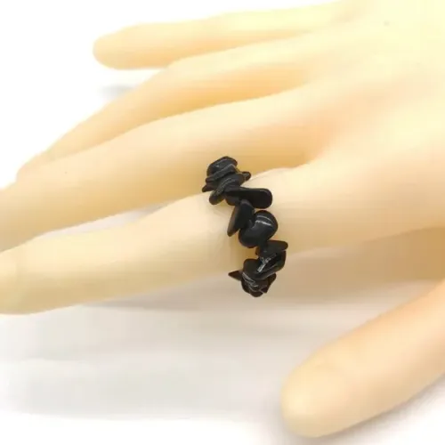 Стрейч-кольцо из натурального чёрного агата шириной около 7 мм.