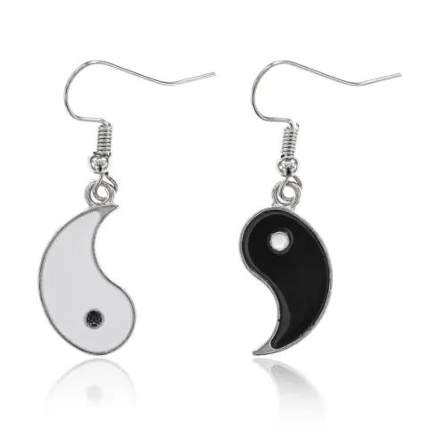 Асимметричные серьги с символом Инь-Ян из бижутерного сплава.
