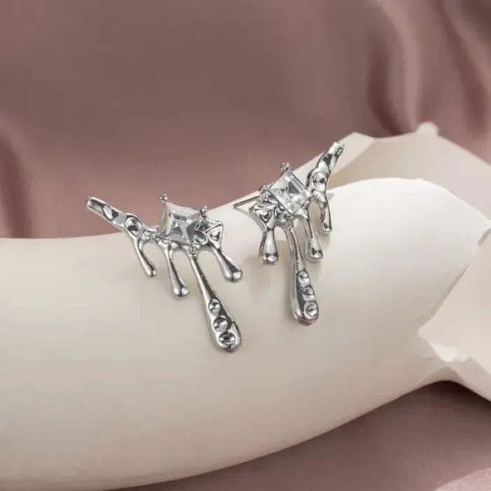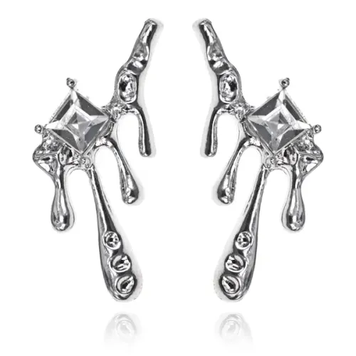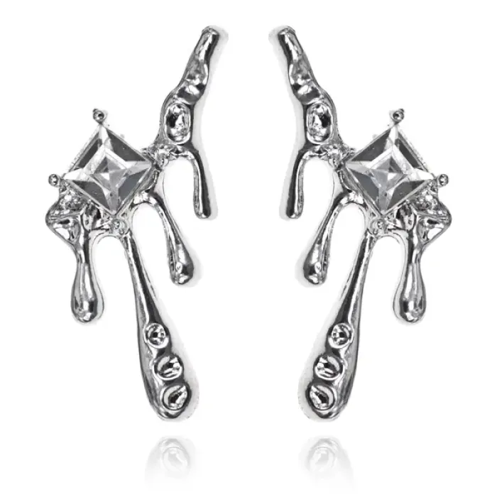Серьги-капли из бижутерного сплава с кристаллами и замком-пусетом.