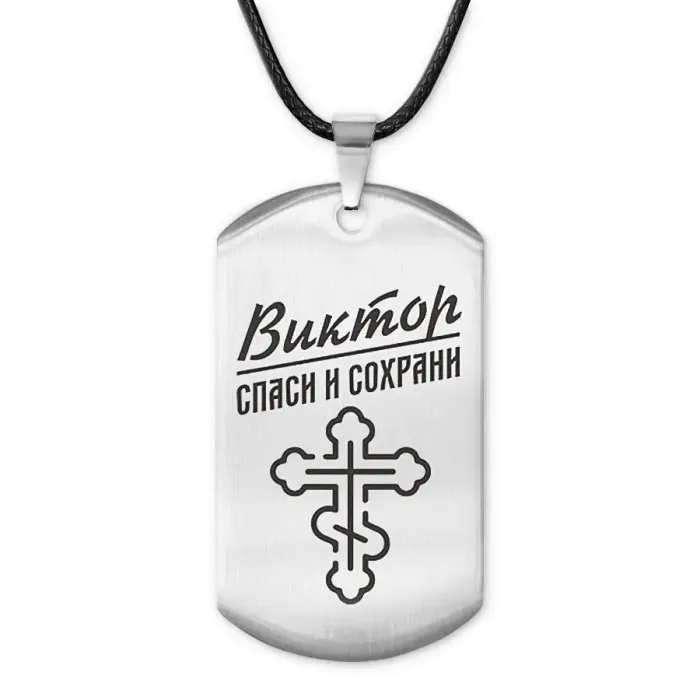 Мужской именной кулон-жетон из нержавеющей стали с лазерной гравировкой.