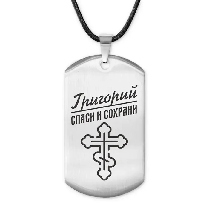 Мужской именной жетон-кулон из нержавеющей стали с лазерной гравировкой.