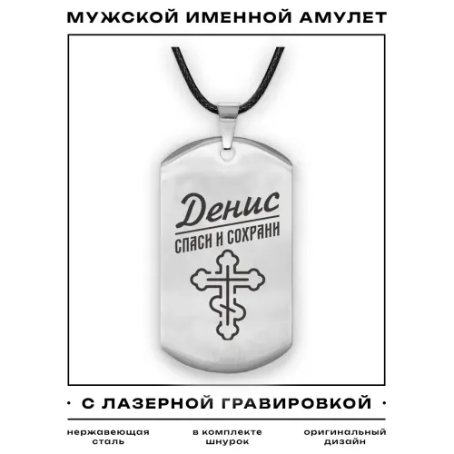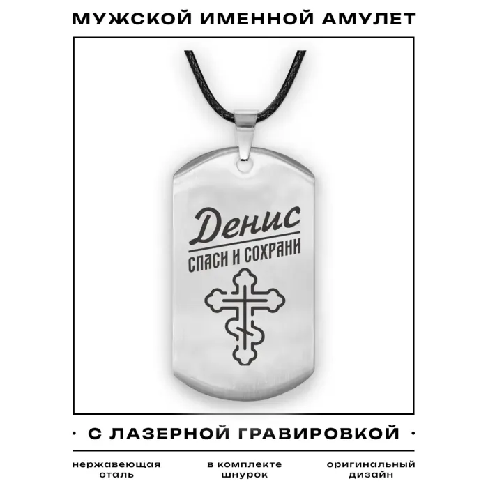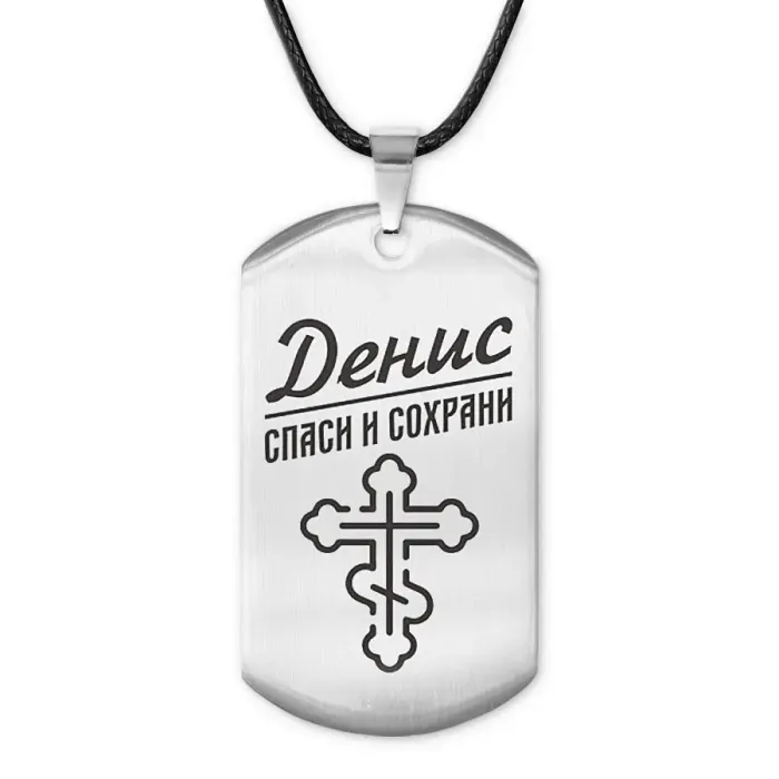 Именной кулон-жетон из нержавеющей стали с лазерной гравировкой на одной стороне.