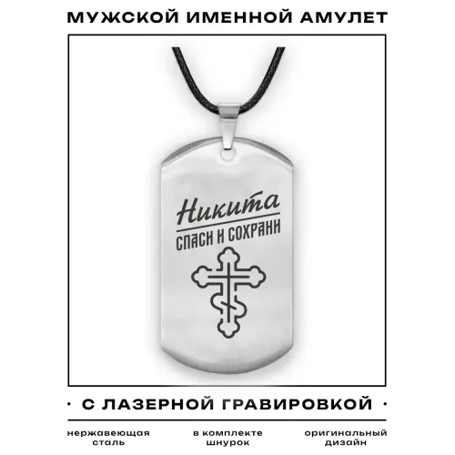 Мужской именной кулон-жетон из нержавеющей стали с лазерной гравировкой.