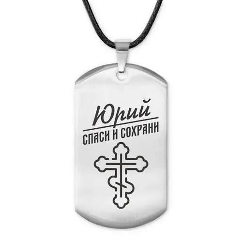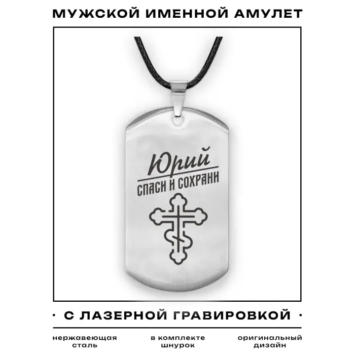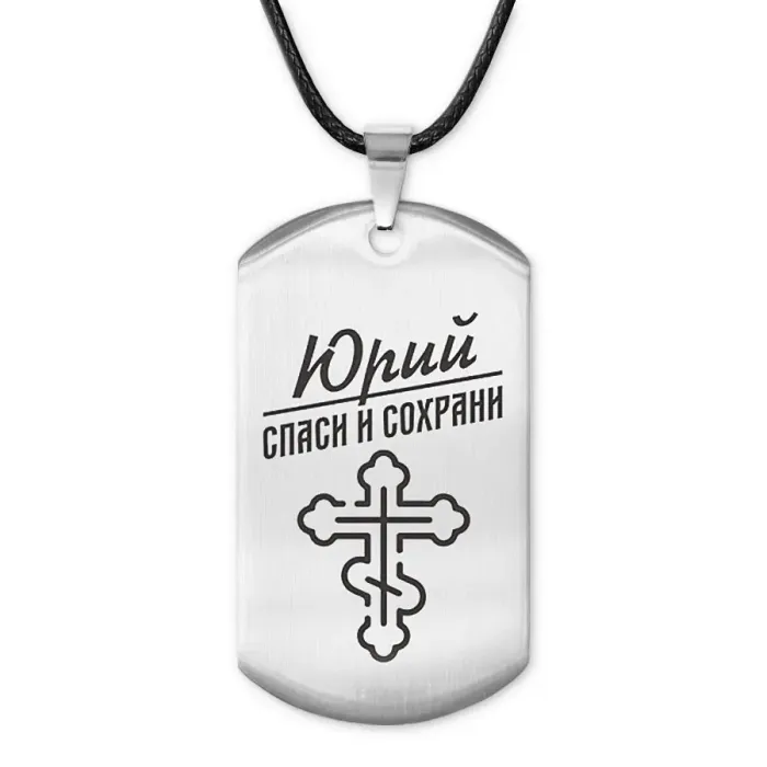 Именной кулон-жетон из нержавеющей стали с лазерной гравировкой на одной стороне.