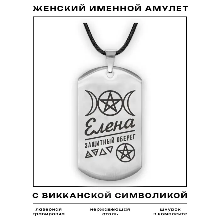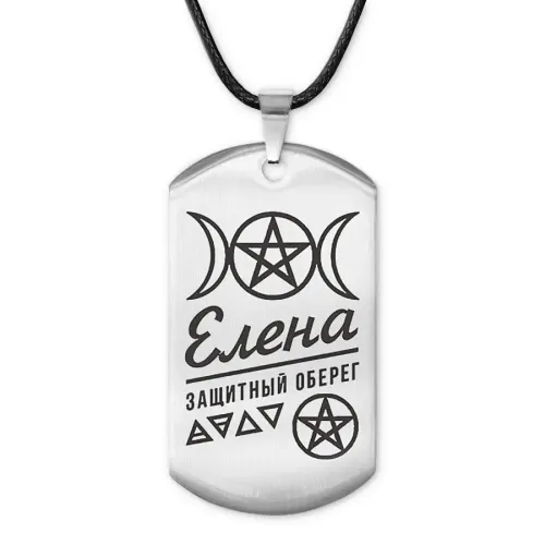 Именной кулон-жетон «Елена» из нержавеющей стали с лазерной гравировкой на одной стороне.
