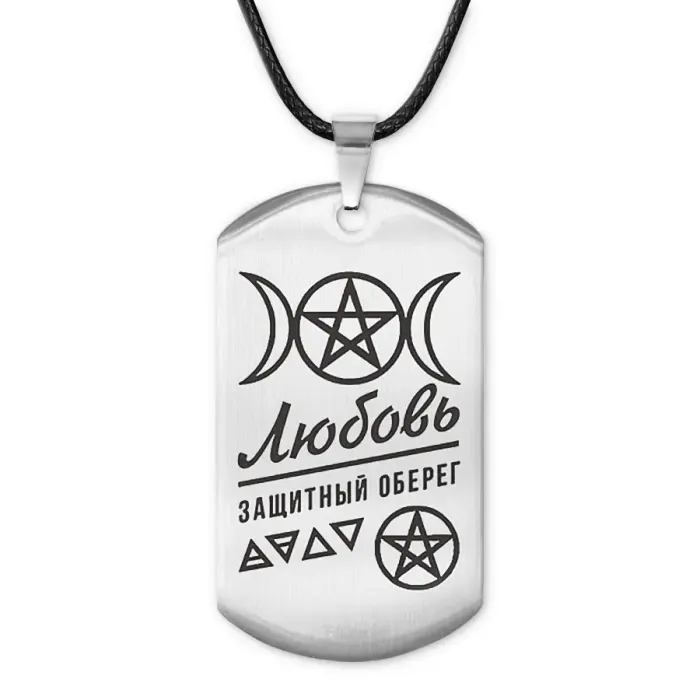 Именной кулон-жетон из нержавеющей стали с лазерной гравировкой изображения.